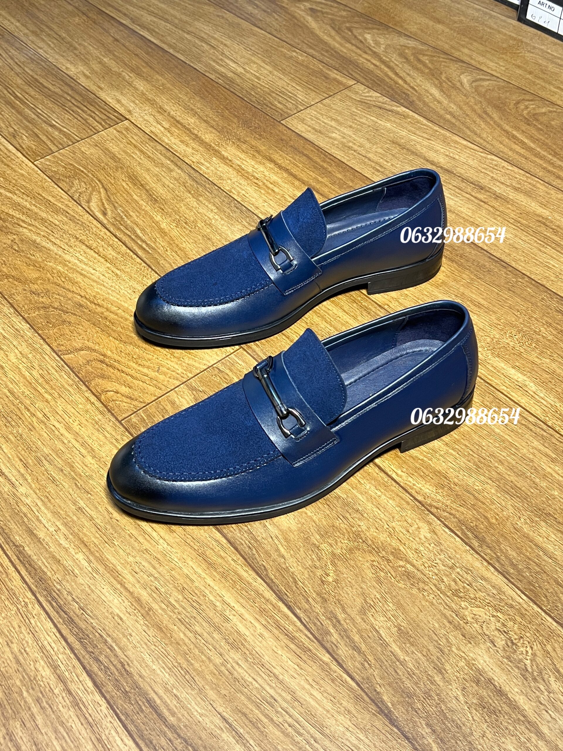 Réf : 162 cuir bleu marine simple & cuir bleu marine + daim bleu