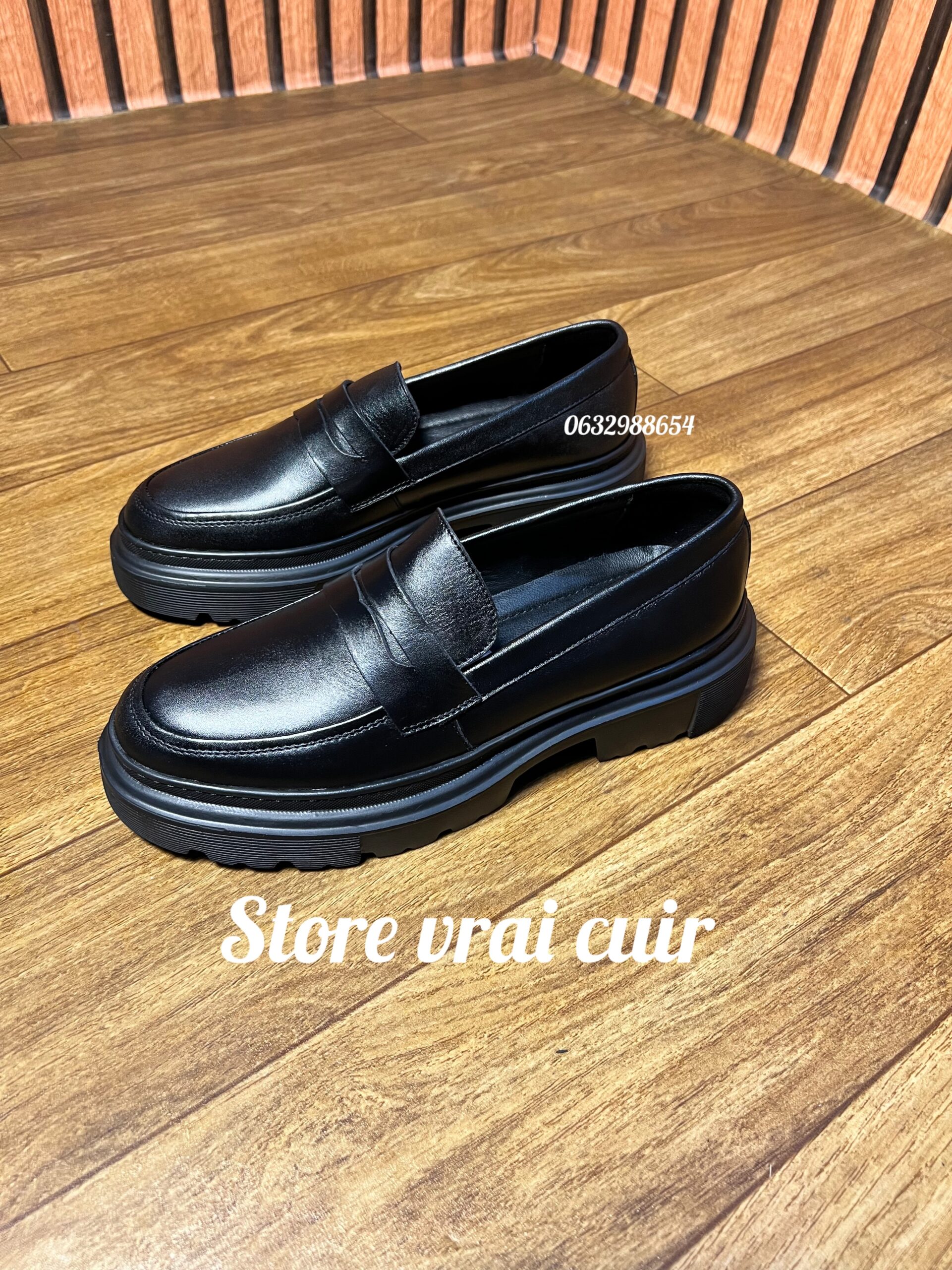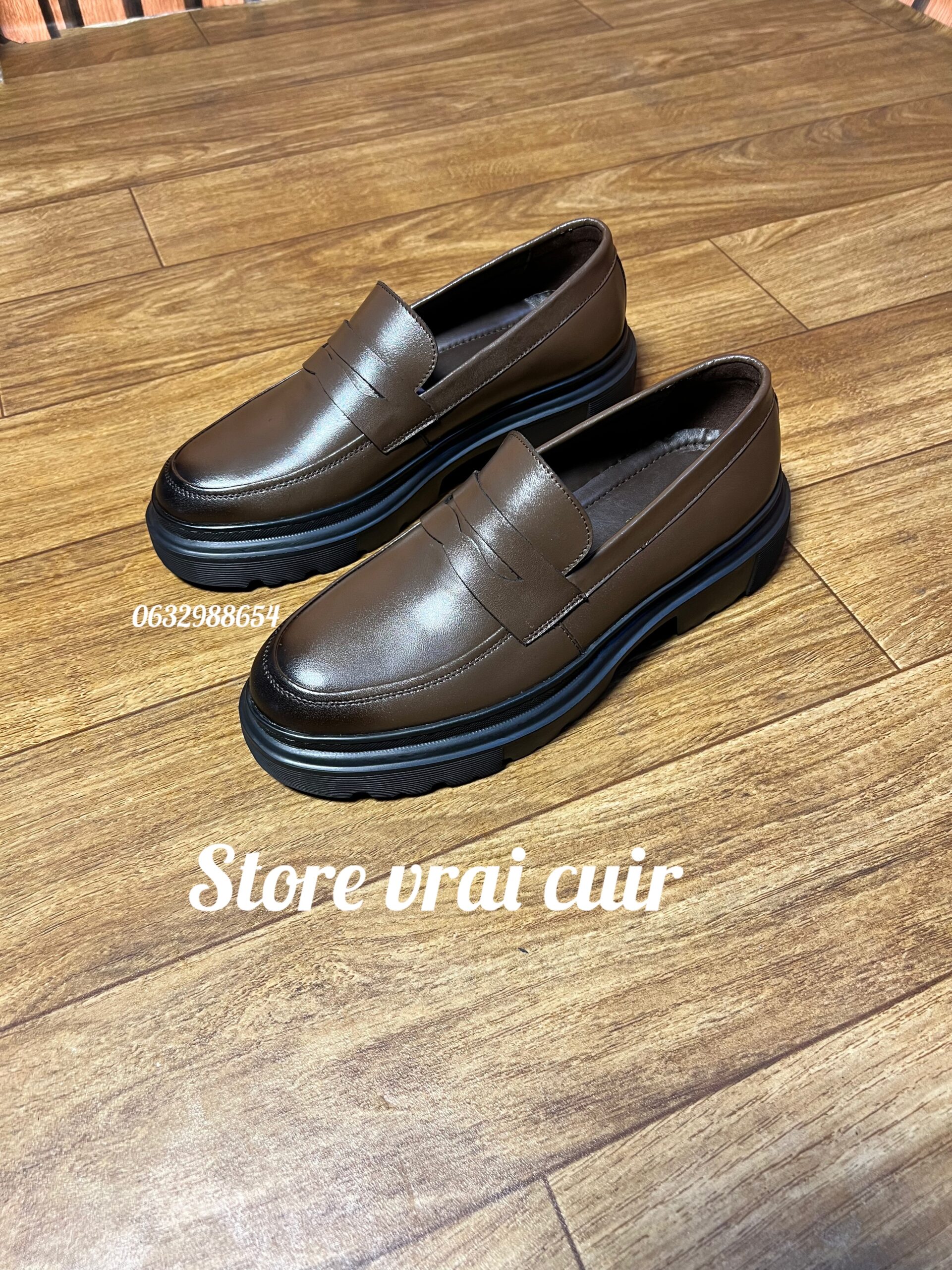 Cuir marron / Noir La semelle confortable très légère 100% cuir intérieur et extérieur